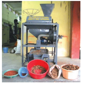 | Value Proposition: | An annatto seed separator is a specialized machine used to efficiently separate annatto seeds from the fruit capsules. Annatto seeds are widely valued for their natural coloring compounds such as bixin, used in food products. The machine improves the efficiency of seed extraction, reduces manual labor, and ensures better recovery of seeds. This technology supports large scale processing and enhances the commercial utilization of annatto for natural food color production. |