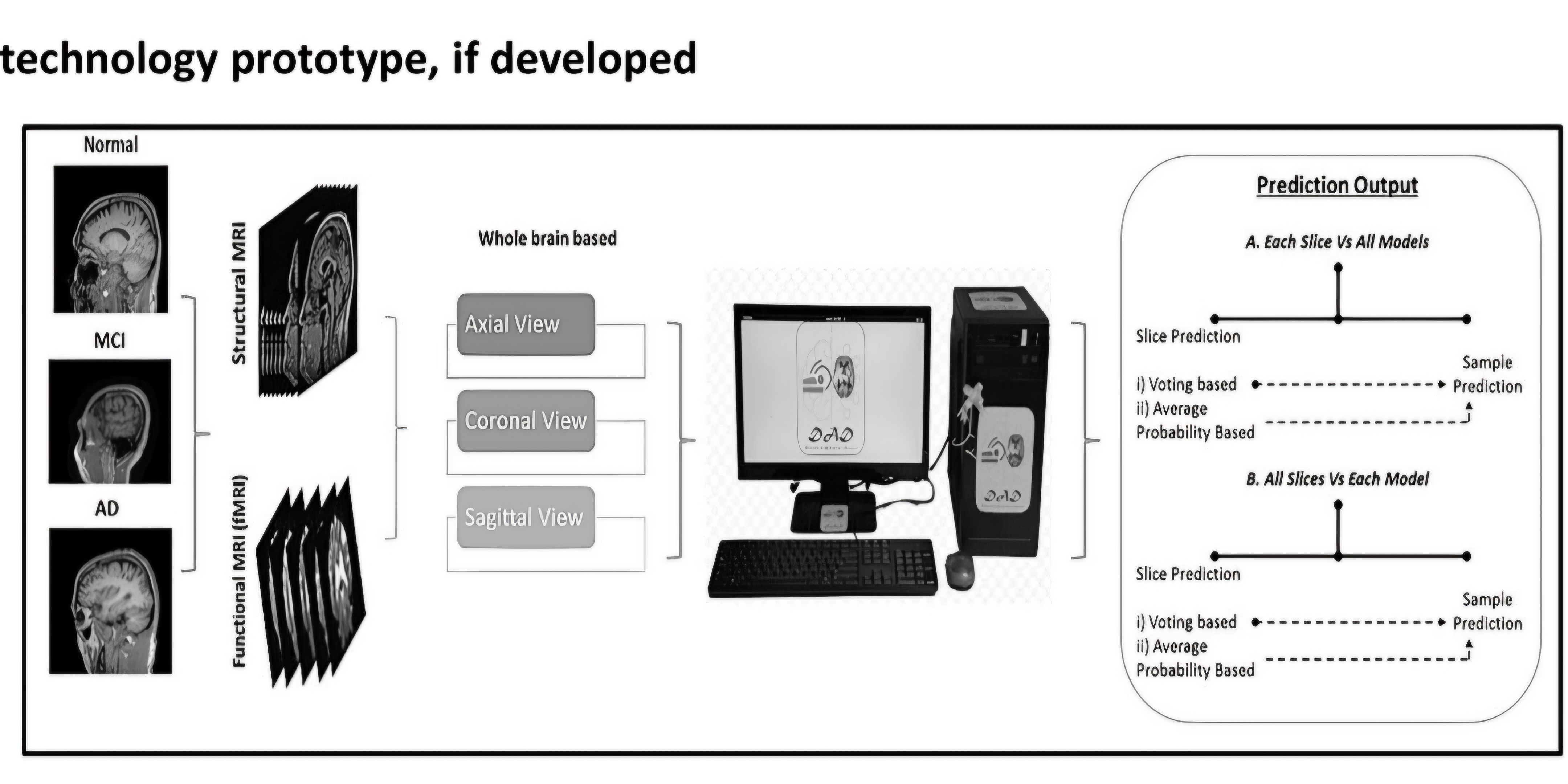 | Summary Application: | Biomedical imaging based development of diagnostic systems is a popular and lucrative field for both academia and industry. Hence, a largegroup of inventors are working on development of effective image processing and machine learning based diagnostic systems for Alzheimer’s disease (AD) detection. However, our method is unique in the sense of its trained models and the derived features which are specific. Hence, the performance and the underlined coding and logical systems are unique to us. Similarly, utilization of both sMRI and fMRI images and their derived features are also novel and unique. Further, enrichment and diversification of the training models via additions of broader patient cohorts and hitherto unknown important features would be specific to our package.
