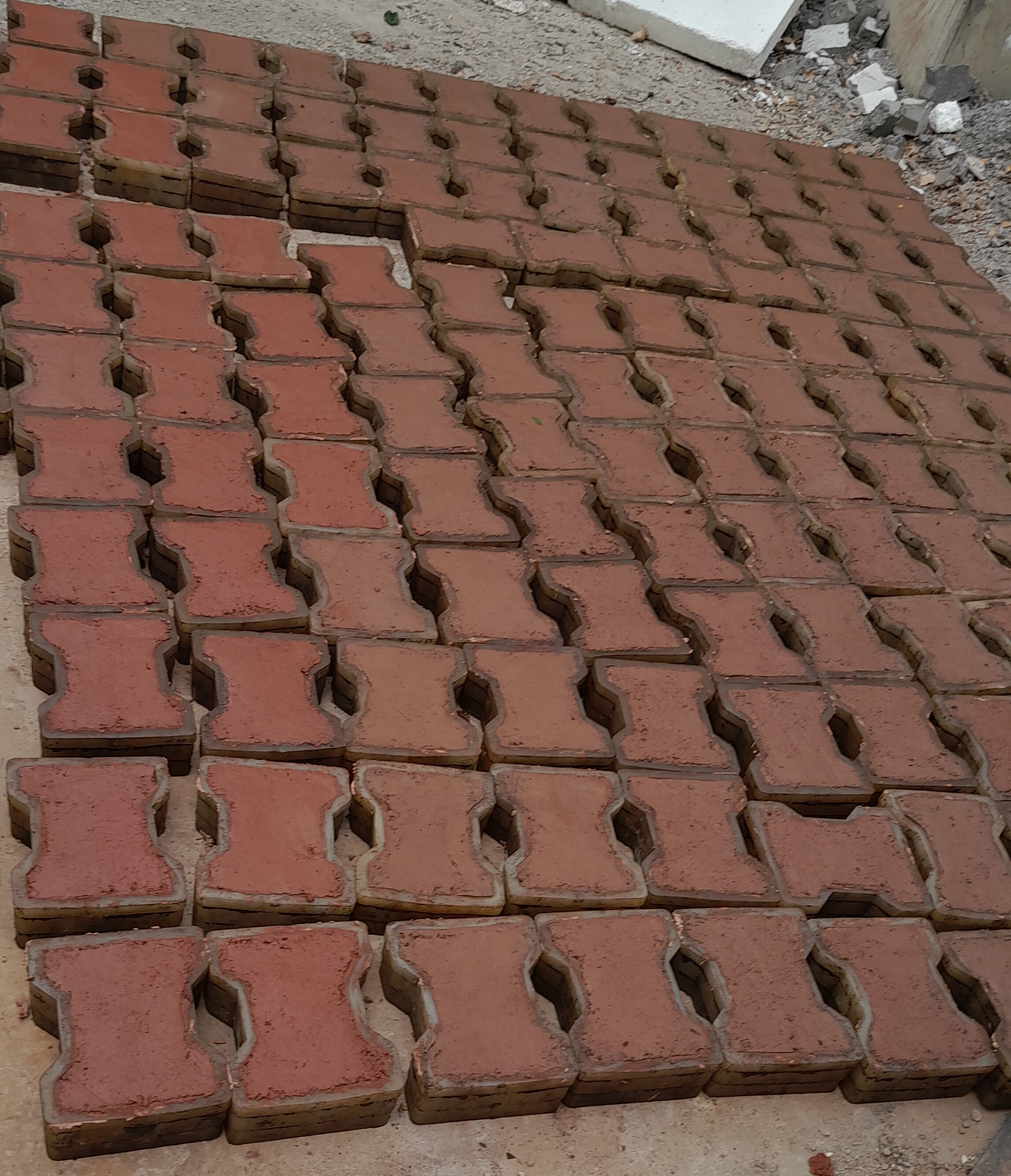 | Advantages: | i. Uses naturally available red soil instead of pigments ii. Replaces fully or partially the scarce river sand requirement iii. Strength can be easily altered for wider application iv. High wear and tear resistance v. Low cost (Rs. 25 per block for 30Mpa strength) vi. Increased thermal comfort |
