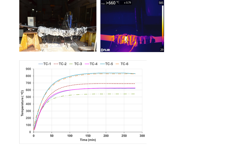 | Value Proposition: | The flexible heating module is designed to heat steel beams, columns, and beam-to-column joints of any size and dimension in a controlled manner by operating across three independent zones. Each zone supports up to three thermocouples for precise temperature measurement. The temperature data is transmitted to a feedback-based control system, which adjusts heating output based on the set point and real-time temperature feedback. A host PC, equipped with custom-designed application software, provides an intuitive user interface for control, data recording, and analysis. This module accommodates heaters with power capacities ranging from 1.0 kW to 10 kW and is fully scalable to meet diverse requirements. By utilizing this module, the size limitations of specimens tested in conventional furnaces can be effectively overcome. |