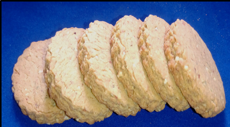 | Advantages: | The use of multigrain containing whole wheat flour, dry pea flour, oats flour will improve the nutritional quality of cookies. There was a two-fold increase in protein and a threefold increase in dietary fiber along with a significant improvement in the fatty acid profile of the of the cookies. |