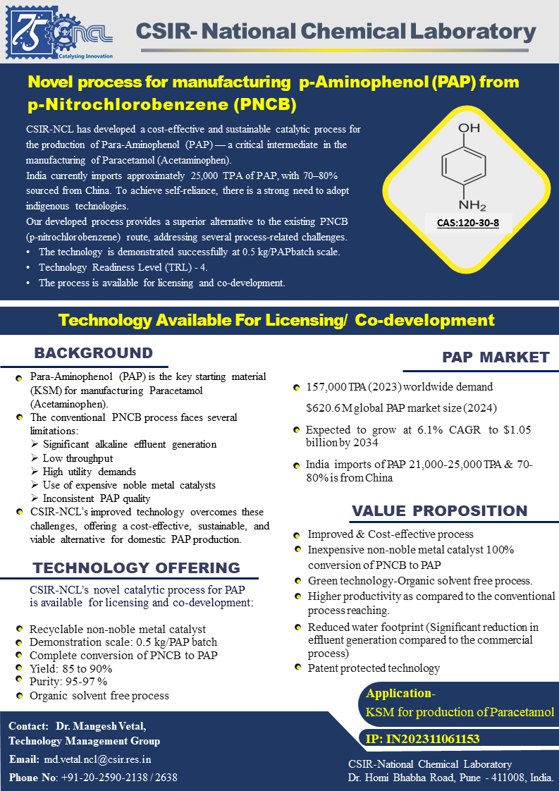 | Title: | Novel Process for Manufacturing P-aminophenol (PAP) from p-nitrochlorobenzene (PNCB) |