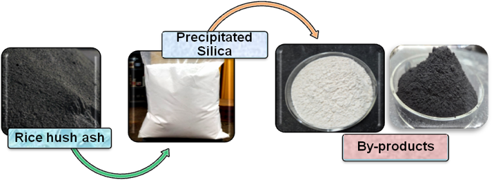 | Summary Application: | Uses rice husk ash as a sustainable feedstock for producing precipitated silica, reducing cost, energy consumption, and chemical usage compared to traditional methods. |