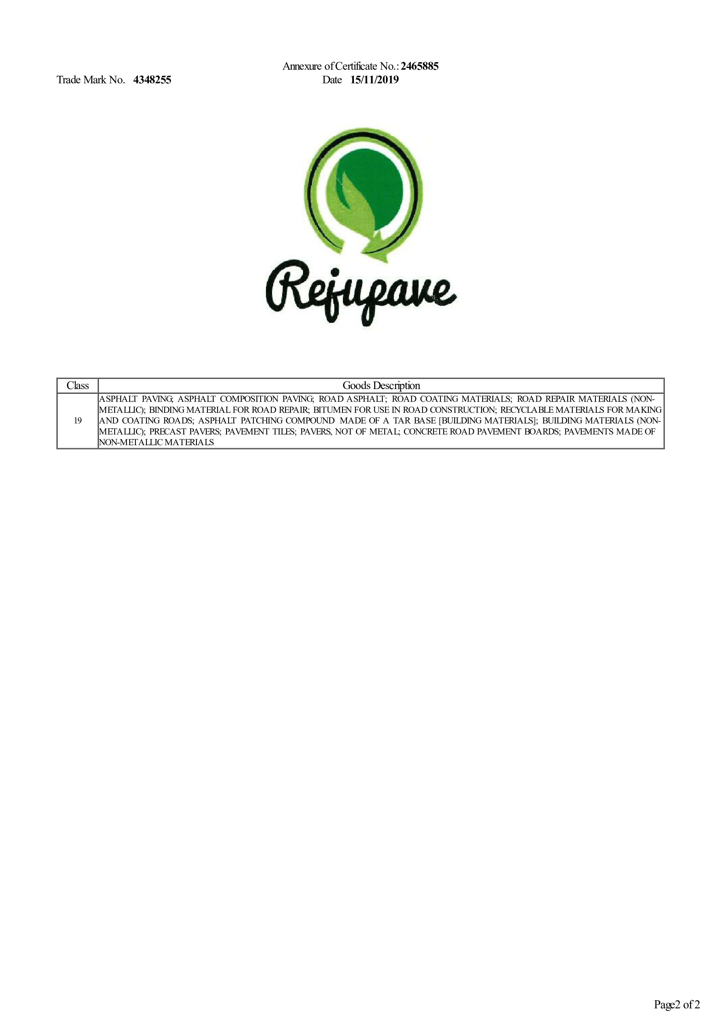 | Summary Application: | REJUPAVE can be used for Hot-in-Plant and Hot-in-Situ Recycling of bituminous pavement on National Highways, State Highways, Airport Runways, Major District Roads, Parking Yard, Heavy Traffic Roads, Surfacing on Bridge Decks, Urban Roads. |