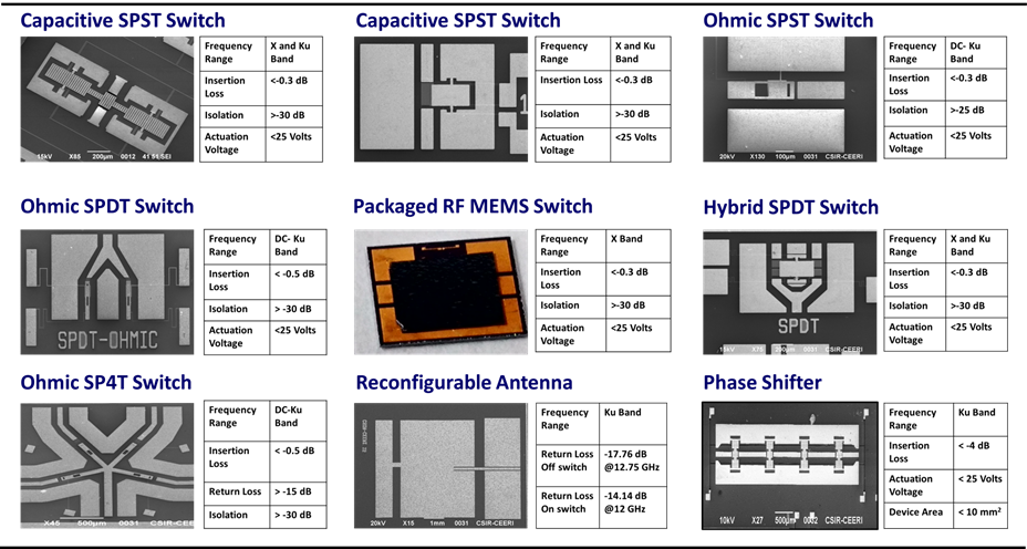 | Summary Application: | RF MEMS switch is a viable replacement of bulkier coaxial switches in satellite payload. These are smaller, lighter and consume negligible power. These switches can also be used in the mobile communication, medical applications like MRI and in smart munition control. |