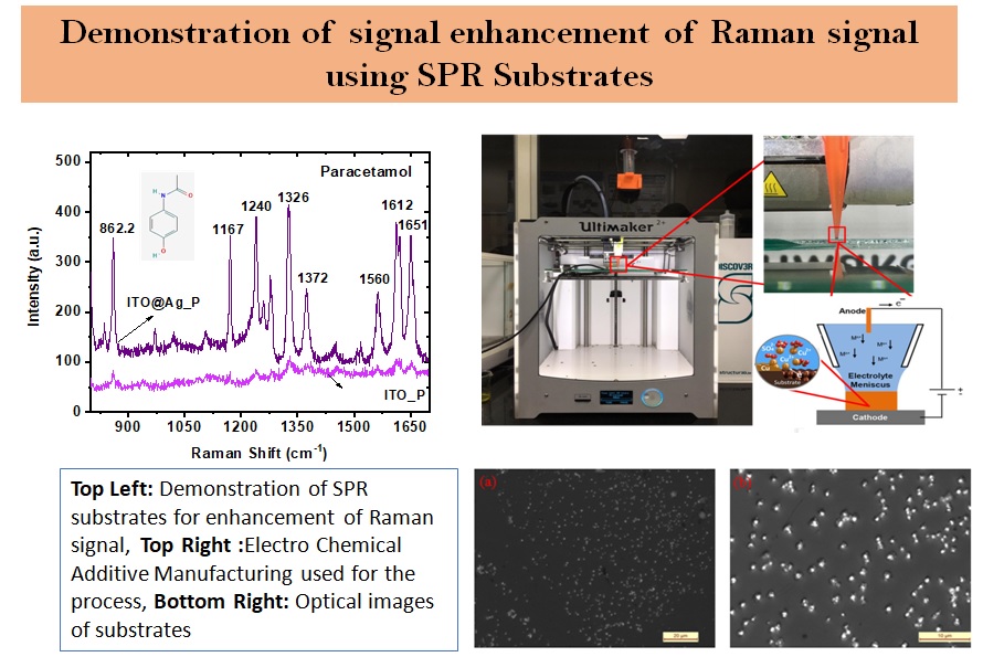| Value Proposition: | The proposed SPR Raman substrates improve the signal level of target compounds for Raman spectroscopy detection. Depending on the Raman spectrometer configuration signal can be increased from 10^1 - 10^7 order enhancement in the signal of the target compound using the surface plasmon substrate. These substrates can be used in pharma, drug testing, forensic, food testing, etc. |