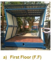 | Summary Application: | This collapsible Ground + First Storey structure is constructed using a steel tube frame integrated with strategically placed hinges to enable folding. The folding mechanism is primarily facilitated by side-wall hinges, allowing compact storage and rapid deployment. To ensure structural stability, single-unit steel frames are incorporated into the front and rear wall panels, providing essential lateral support for the pinned structure. The hinges are equipped with temporary locking and bolting mechanisms to ensure secure and efficient installation. This versatile shelter can serve multiple purposes, including use as a security tower, transit shelter, semi-permanent structure in remote or hilly regions, and in disaster-affected or flood-prone areas where access to construction materials is limited. Additionally, there is provision to integrate thermal comfort materials, enhancing habitability across various climatic conditions. |