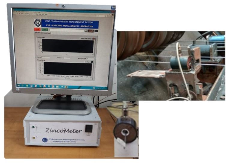 | Summary Application: | Zinc coating is the most effective and widely used process to prevent corrosion and increase the longevity and performance of steel wire. Zinc coating is generally applied to steel wire by hot-dip galvanizing (HDG) process. In this process, the steel wire is passed through a bath of molten liquid zinc or zinc alloy resulting in a protective layer. The final quality of galvanized wire depends on the material surface, zinc adhesion, and uniform coating weight. Proper substrate cleaning and temperature control can govern the first two parameters, but the coating weight is often measured too late in the process to correct. In fact, many producers verify hot-dip zinc coating weight after the coil exits the mill. At this point, if the results are unacceptable the entire coil is downgraded or scrapped. This results wastage of raw materials and production costs. Generally, wiping technologies (Nitrogen wiping for thick coating and Pad wiping for thin coating) are adopted in order to address this issue. Though the Zinc weight control system exists in N2 wiping line but there is no such system is available for Commercial line. Non-existent of inline GI coating weight measurement system makes the producer handicapped to assess the required weight. However, in the pad wiping galvanizing process during production, due to a number of process conditions steel wire coating weight inevitably fluctuates leading to the variation of coating thickness that not only contributes to the instability of the product quality, but also the loss of costly coating raw materials like zinc. The present technology offers a real-time, non-contact industrial sensing system coupled with data processing and feedforward control mechanism that is capable of working in harsh industrial environments while providing immediate feedback on zinc weight during production in both N2 wiping as well as Pad wiping (Commercial) GI lines. |